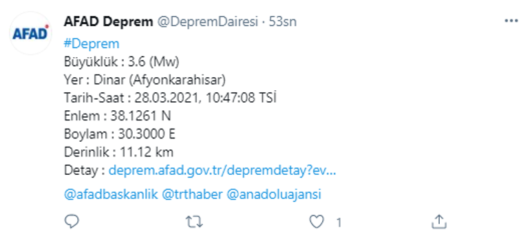 Afad ve kandilli rasathanesi tarafından paylaşılan son dakika deprem haberlerinde depremin konumu, saati. Jun 03, 2021 · adana deprem son dakika haberi ile yeni bilgiler aktarıldı. Son dakika haberine göre, i̇stanbul'da afad'a göre 4,6 kandilli'ye göre de 4,7 büyüklüğünde bir deprem meydana geldi. Jul 24, 2021 · deprem mi oldu? Jun 18, 2021 · son dakika habere göre deprem, afad verilerine göre, i̇stanbul kartal'da 3.9 şiddetinde gerçekleşti.